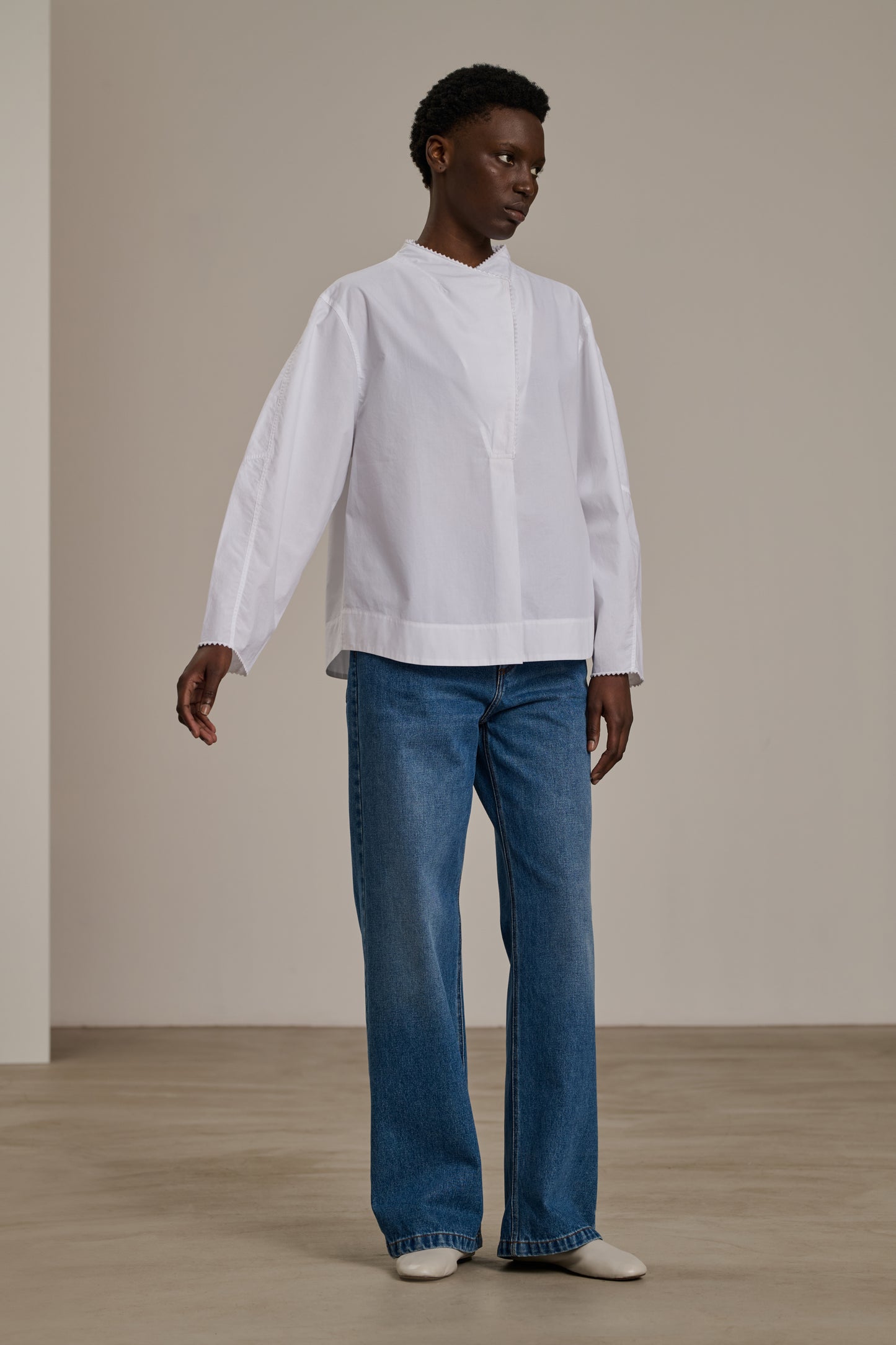 BERRY is a straight-cut cotton poplin shirt. The long sleeves and neckline are embellished with a delicate embroidery detail, adding a subtle touch of femininity. A deceptively classic shirt that will effortlessly complement your wardrobe.