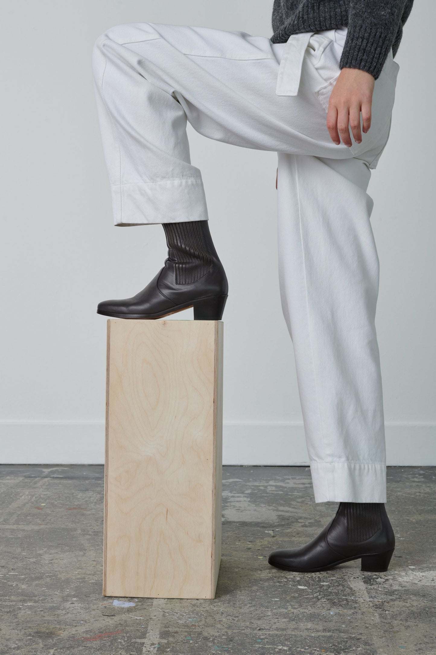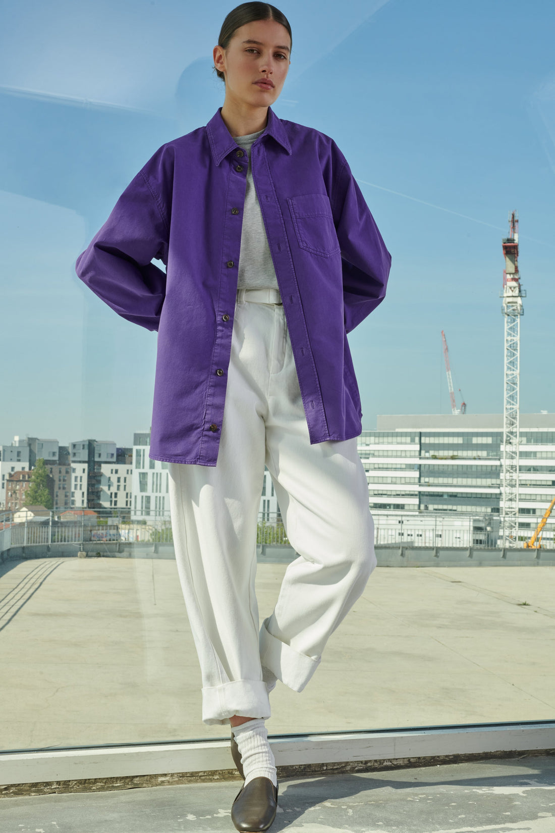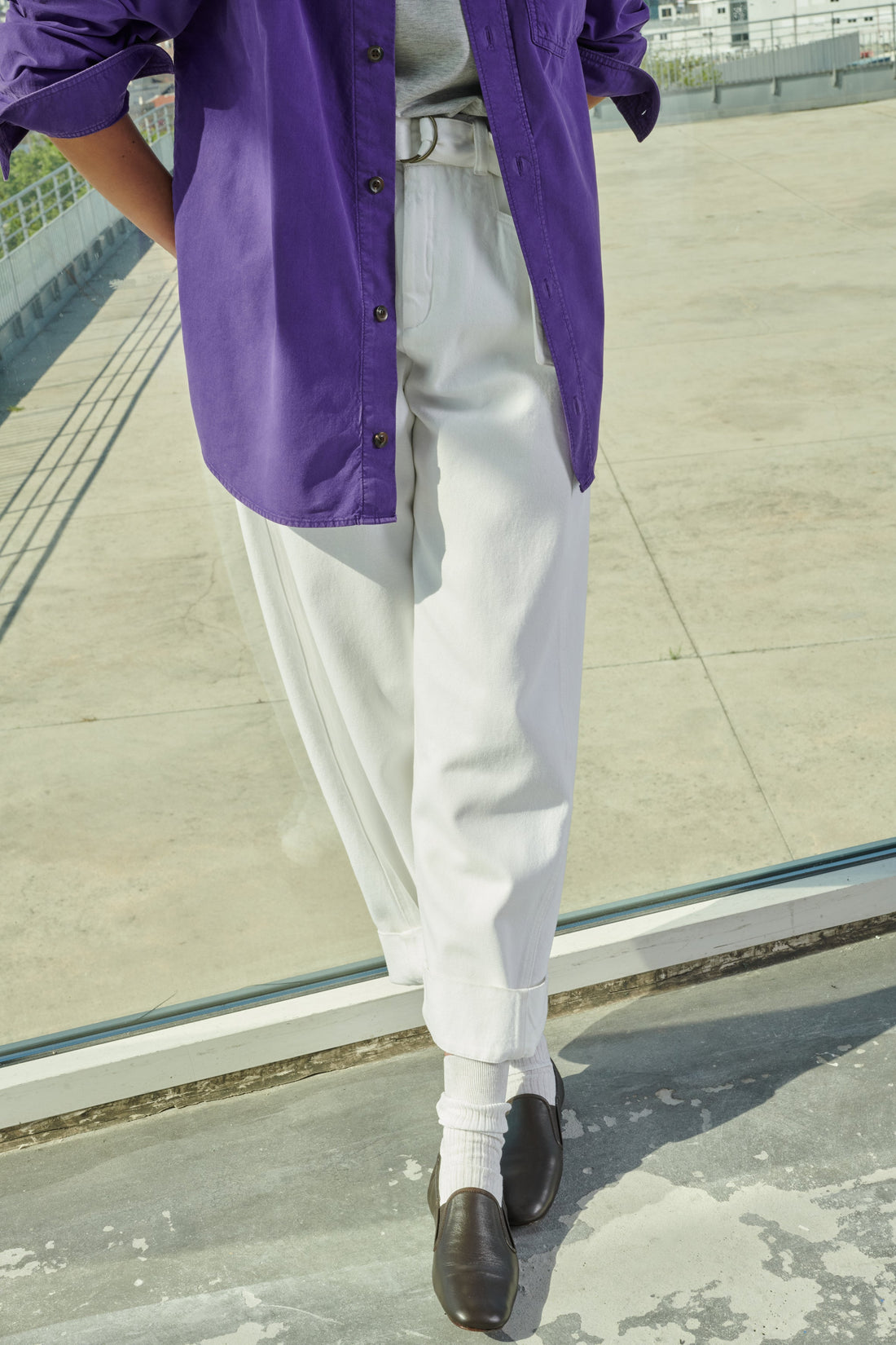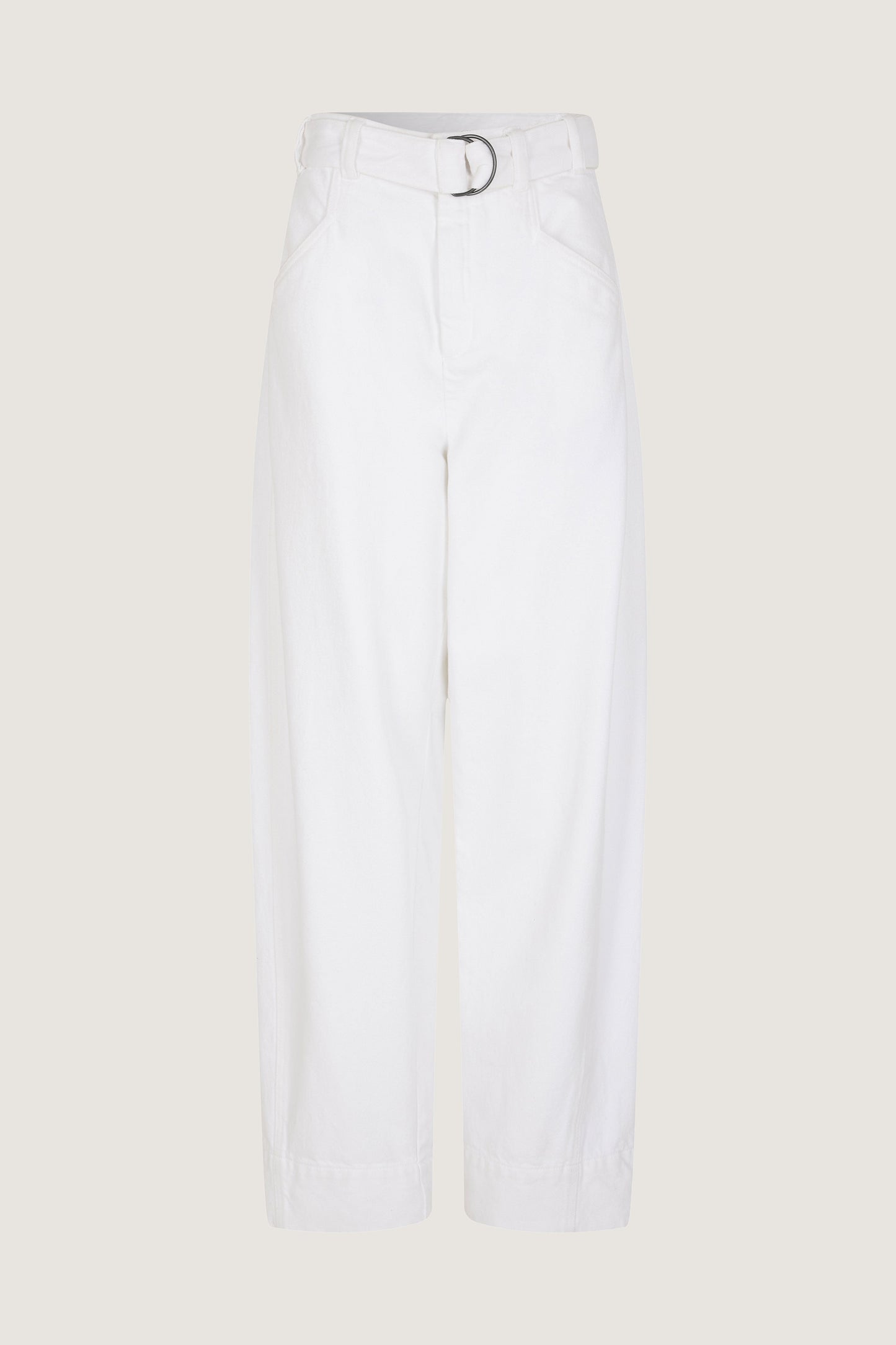 White denim high-waisted trousers