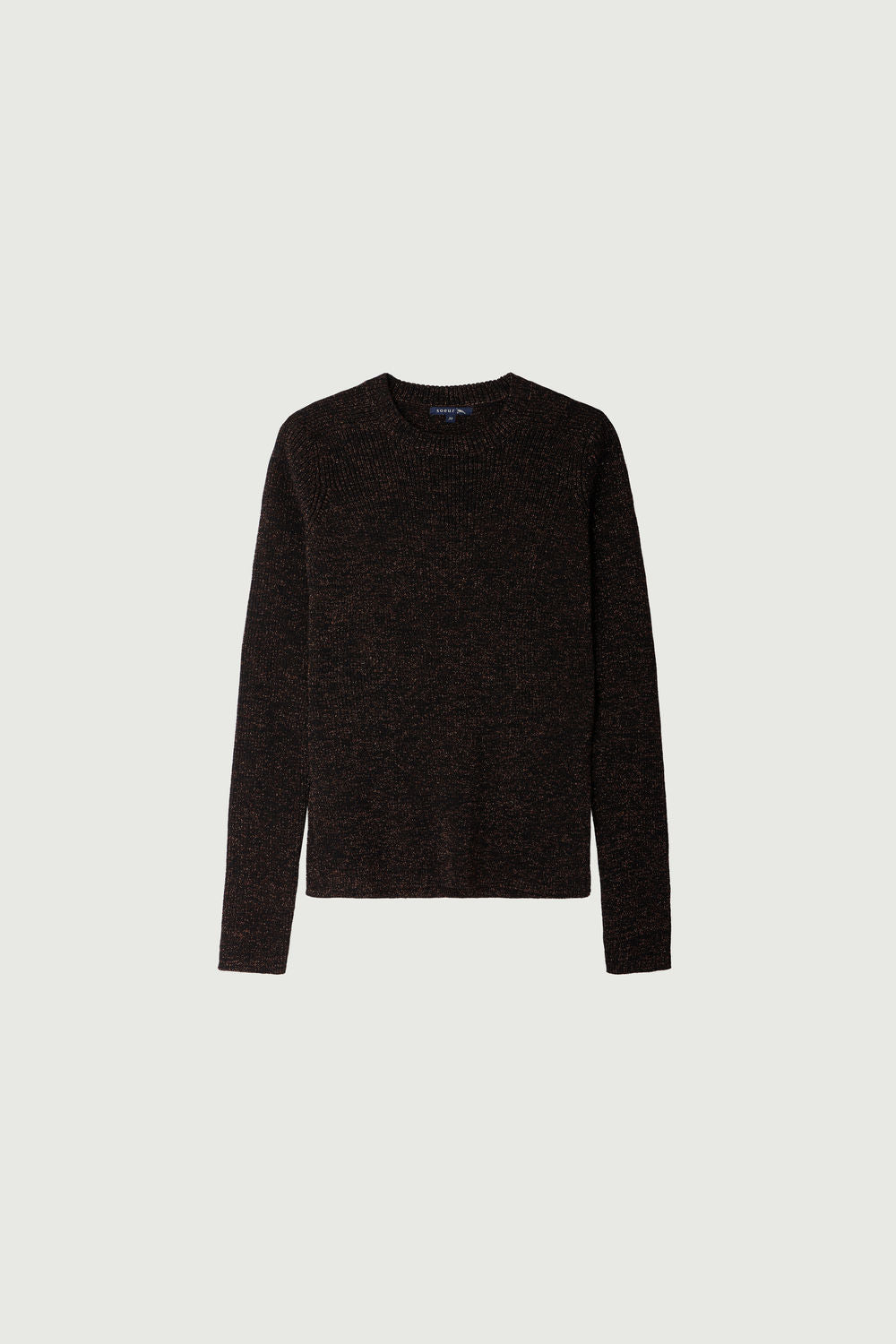 VERONA is a ribbed jumper knitted from merino wool yarn, mixed with lurex for an iridescent effect. It has a straight, close-fitting cut and a round neckline.