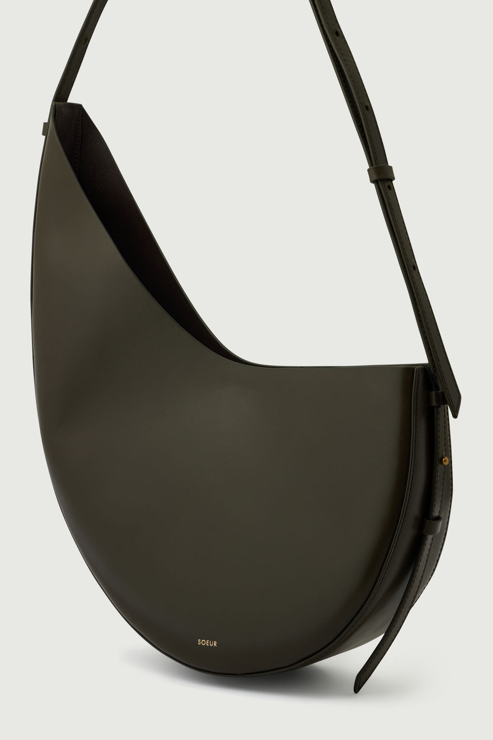 - Removable lambskin leather pouch inside the bag, secured with a snap button