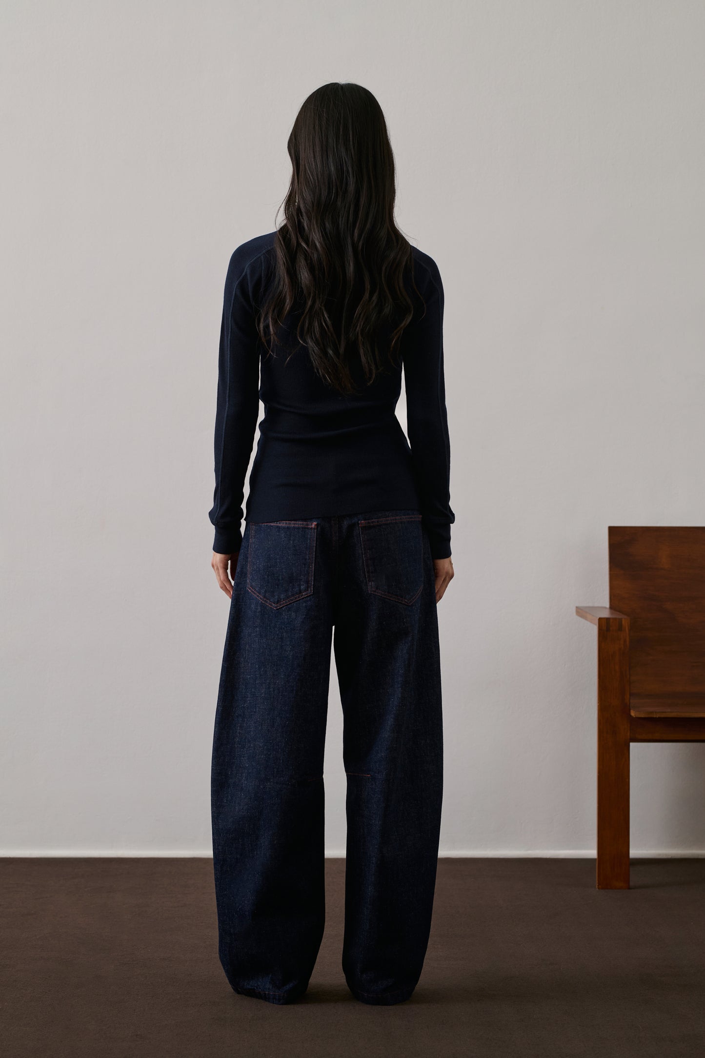 Long-sleeved plain ribbed wool deep navy
